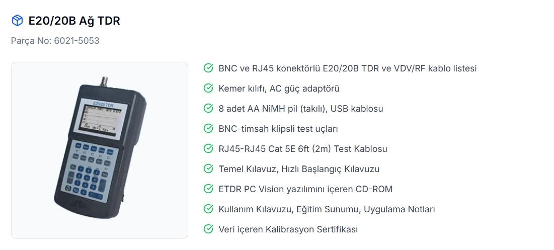 Çoğu cihaz ilk 3-5 metredeki arızayı göremez (kör nokta). E20/20B, cihazın hemen girişindeki konnektör hatasını bile yakalar.