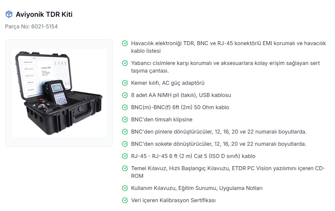Ürün Sipariş Kodu : Aviyonik TDR Cihazı