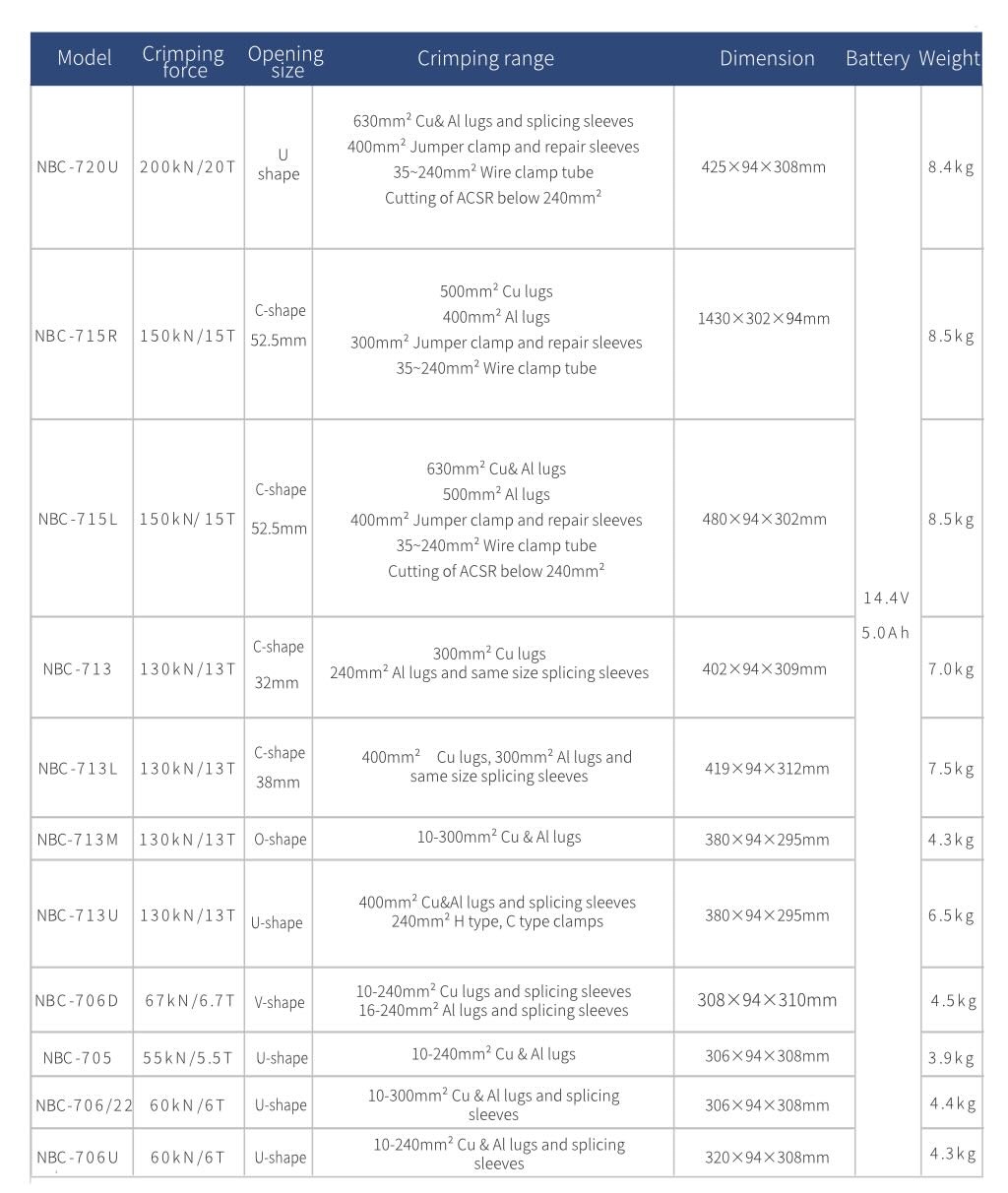 Geniş Uygulama Sahası İçin Hidrolik Bataryalı SKP Pabuç Sıkma Cihazları Tablosunu İnceleyin