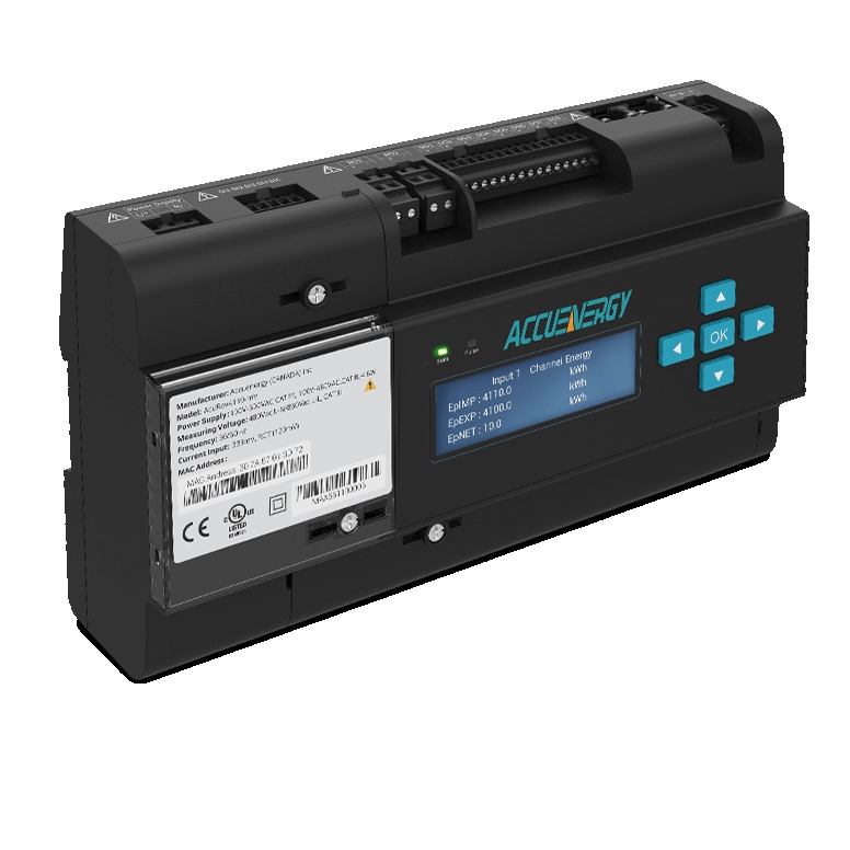AcuRev 4100 Serisi, tek fazlı ve üç fazlı sistemlerin ölçümü için 24 adede kadar akım girişine sahip çok kanallı bir alt sayaçtır. Sayaç, ANSI C12.20 Sınıf 0.2 ve IEC 62053-22 Sınıf 0.2S standartlarına uygundur ve yüksek yoğunluklu kiracı faturalandırması ve dağıtım devresi uygulamalarında gerçek zamanlı enerji ölçümü ve güç kalitesi izleme için gelir sınıfı doğruluk sağlar.