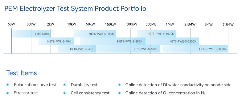 Test edilen elektrolizörün güvenliği analiz edilebilir. Bu seri, PEM elektrolizörlerinin Ar-Ge, doğrulama ve kullanım ömrü sonu testlerinde kullanılır.